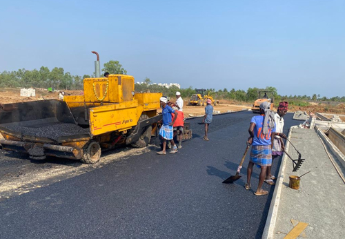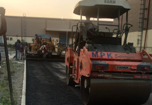 Asphalting Road by Mechanical paver Finisher